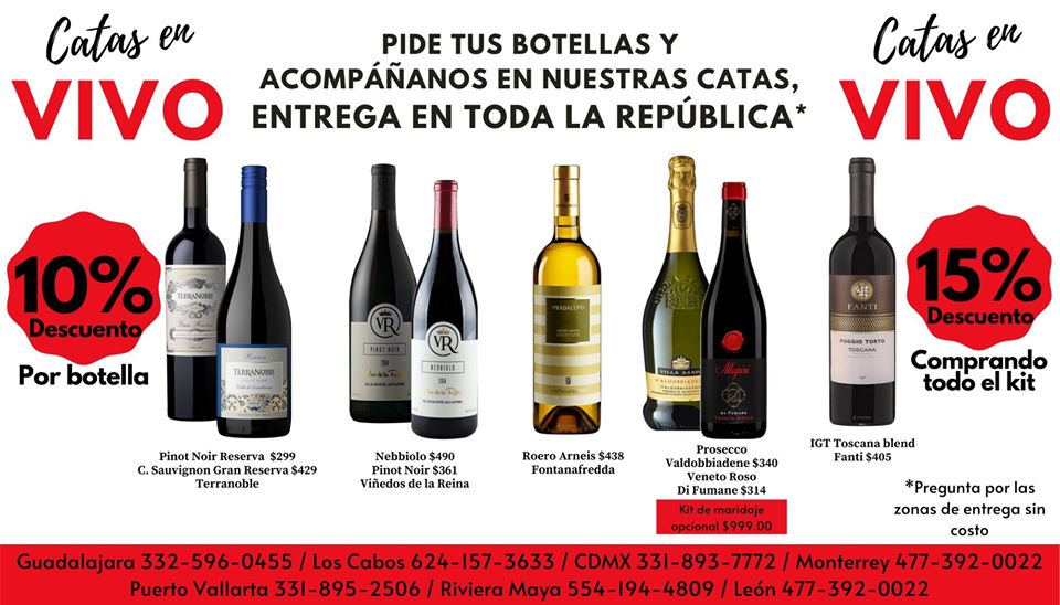 En su página están ofreciendo kits con los vinos de cada cata, con envío gratis en CDMX (aunque el de esta aún no está disponible).